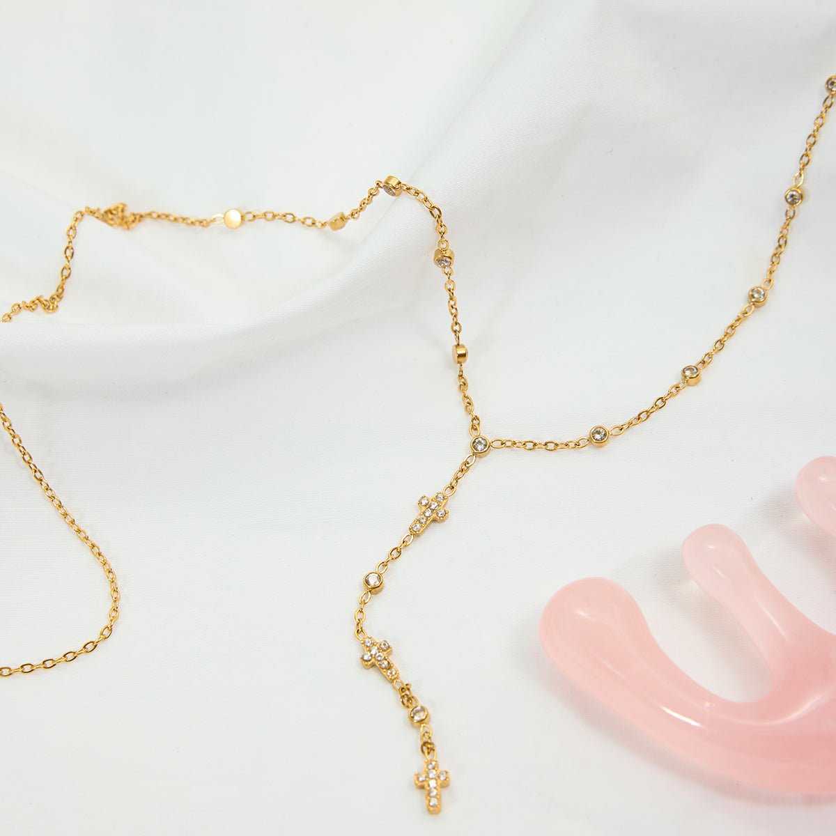 Le collier Noella incarne la douceur et la lumière. Ses délicats zircons scintillants se mêlent à une fine chaîne dorée pour créer un éclat subtil et raffiné. Orné d’une croix élégante, il symbolise la pureté et la sérénité, tout en ajoutant une touche chic à chaque tenue.